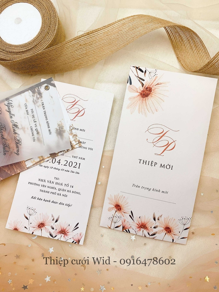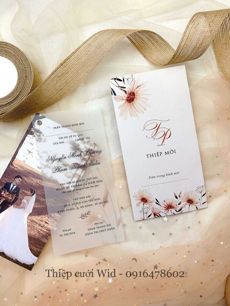 - Hoa đồng tiền trên thiệp cưới thường đại diện cho sự tinh khiết và trong sáng của tình yêu đôi lứa, biểu hiện mong muốn cho một hành trình hôn nhân đẹp đẽ và trong trắng.