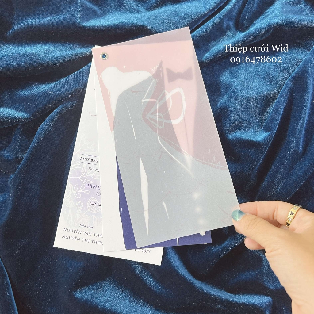 Thiệp gồm 1 phong bao kèm 3 thiệp đơn có đính khuy