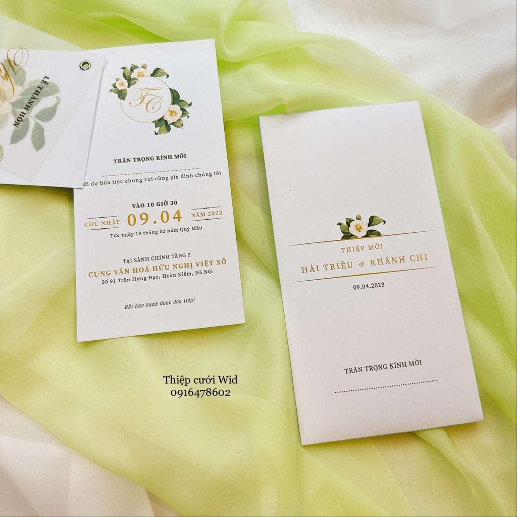 - Với sắc xanh mát mắt, những thiệp này thể hiện sự tươi mới, thanh thoát và sự hài hòa của tình yêu. Mỗi chiếc thiệp là một lời chúc ngọt ngào, là một dấu ấn đẹp đẽ cho ngày trọng đại của đôi uyên ương.
