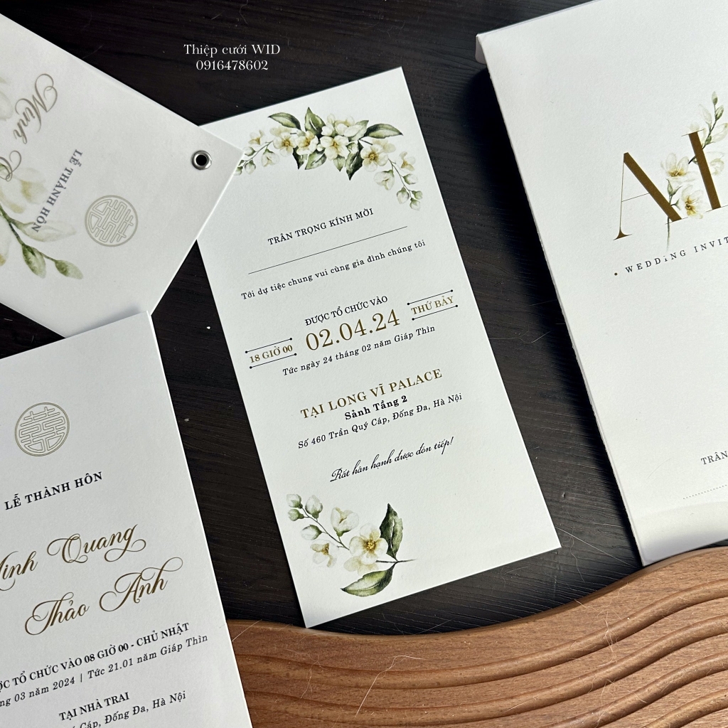 - Với sắc xanh mát mắt, những thiệp này thể hiện sự tươi mới, thanh thoát và sự hài hòa của tình yêu. Mỗi chiếc thiệp là một lời chúc ngọt ngào, là một dấu ấn đẹp đẽ cho ngày trọng đại của đôi uyên ương.