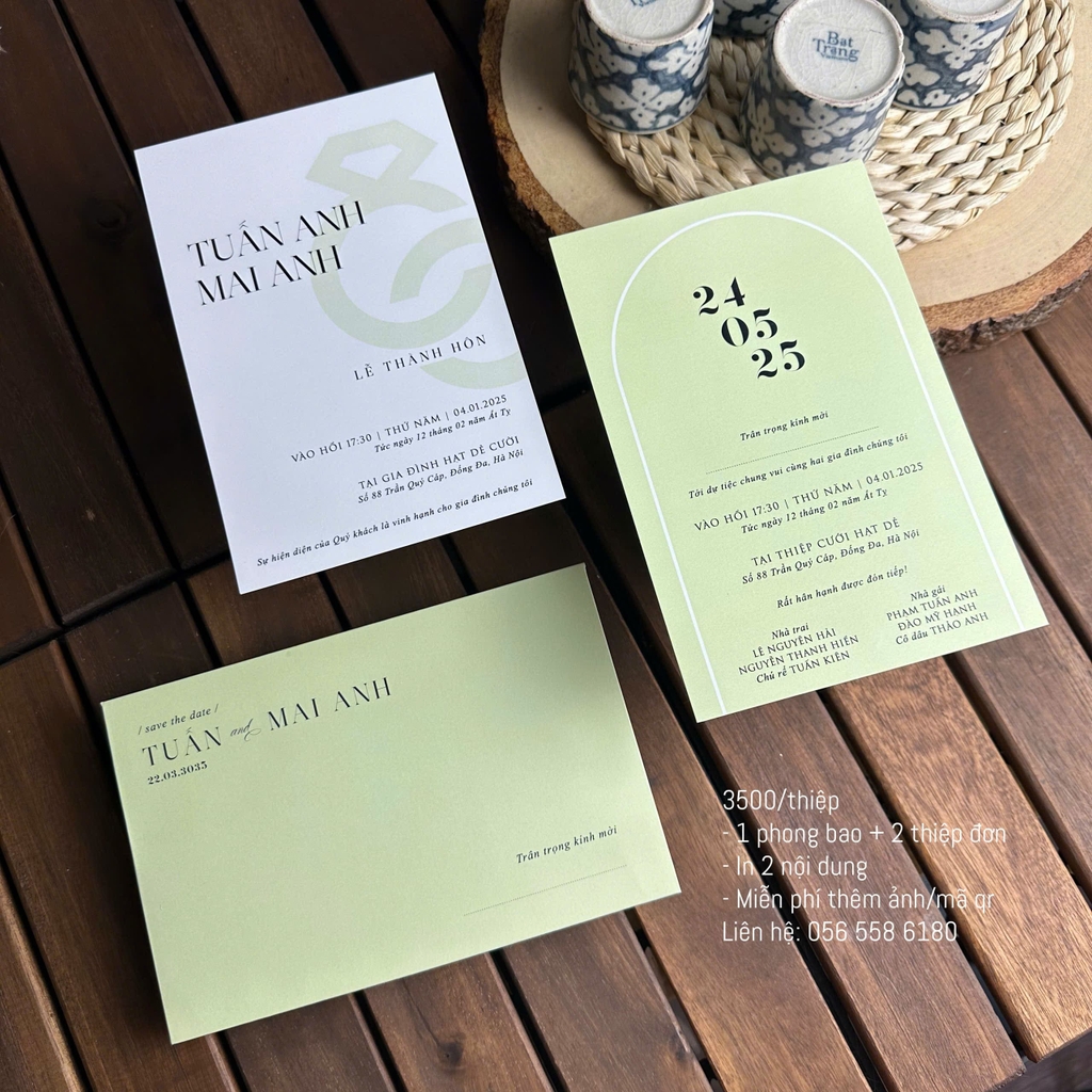 Thiệp gồm 1 phong bì + 2 tờ thông tin rời