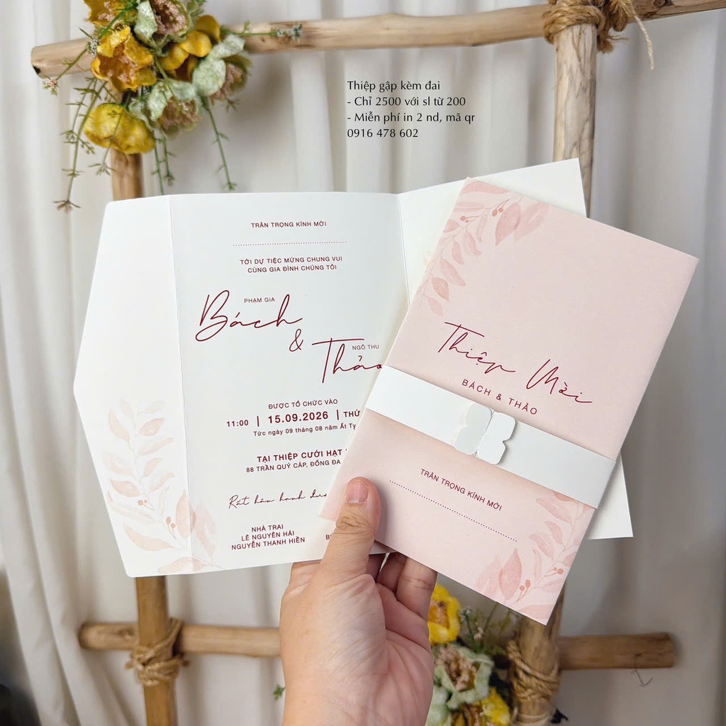 - Thiệp gập 3 cạnh cơ bản, kèm đai giấy