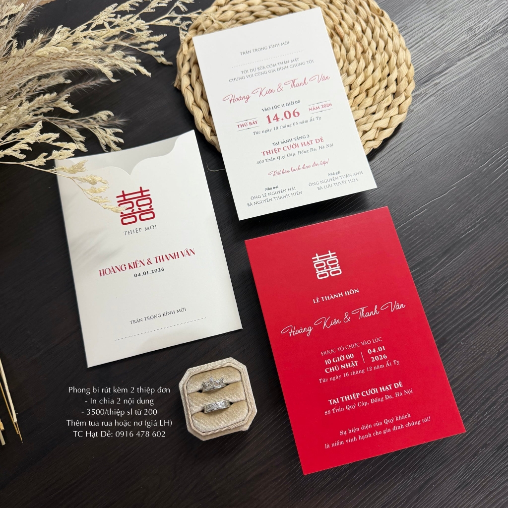 Thiệp gồm 1 phong bì + 2 tờ thông tin rời