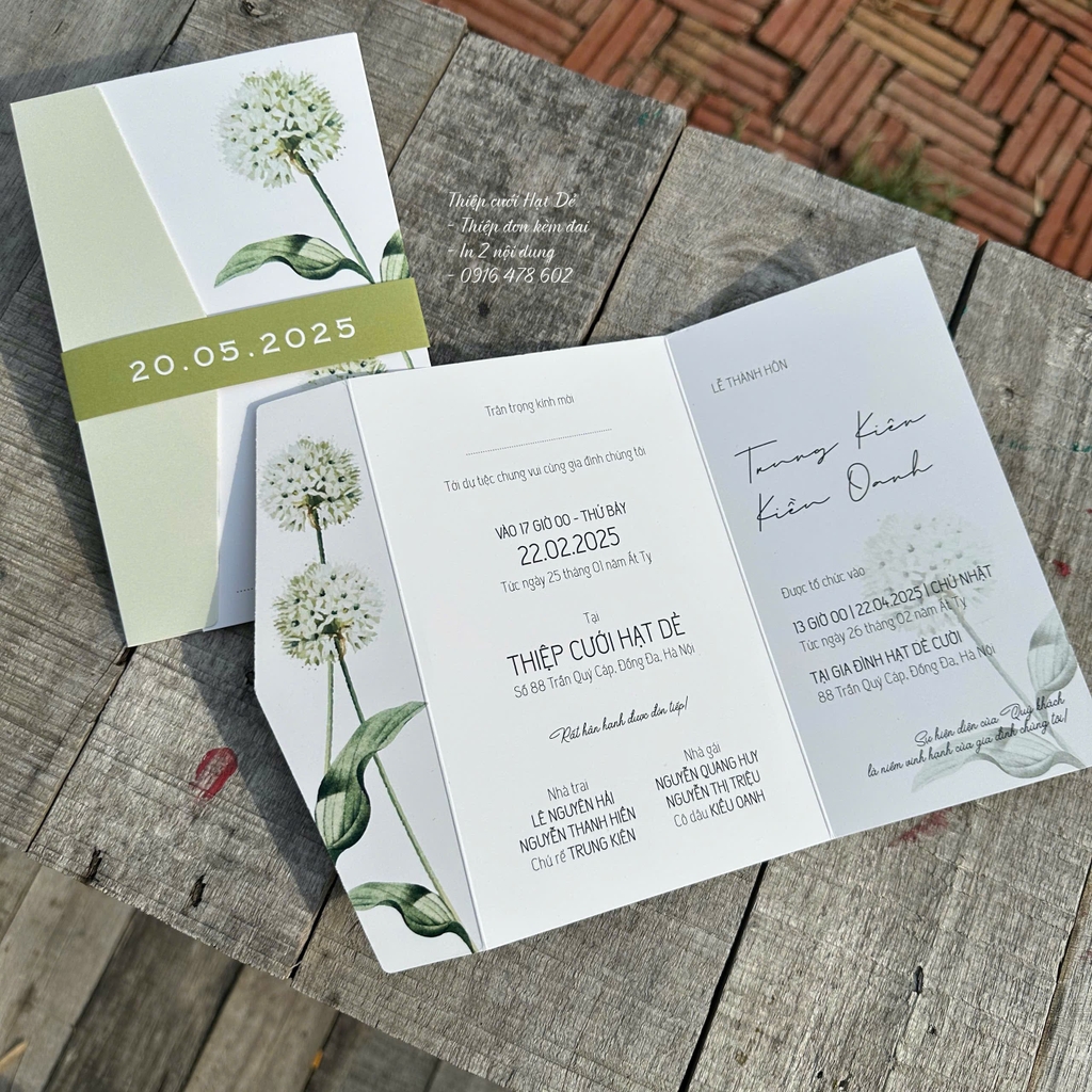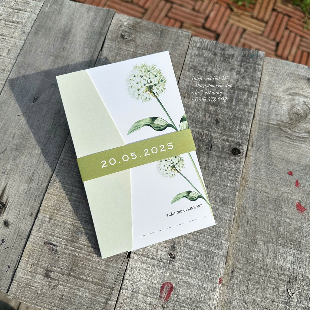- Thiệp gập 3 cạnh cơ bản, kèm đai giấy