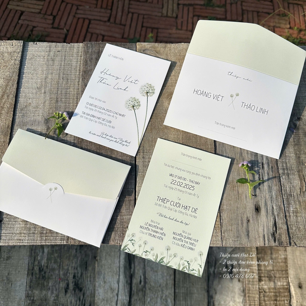 Thiệp gồm 1 phong bì + 2 tờ thông tin rời