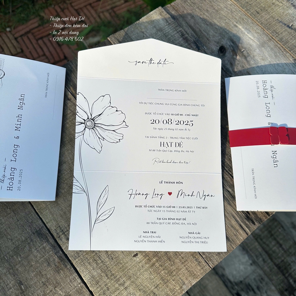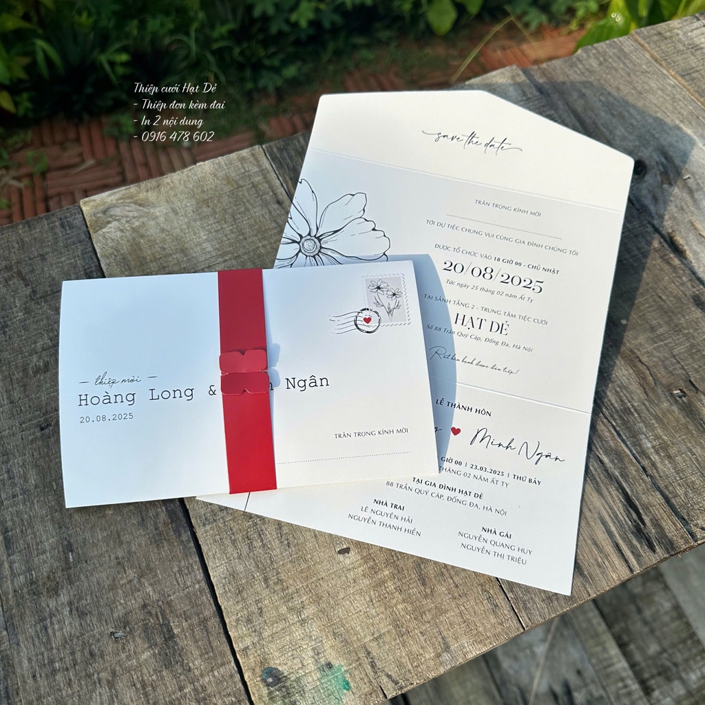 - Thiệp gập 3 cạnh cơ bản, kèm đai giấy