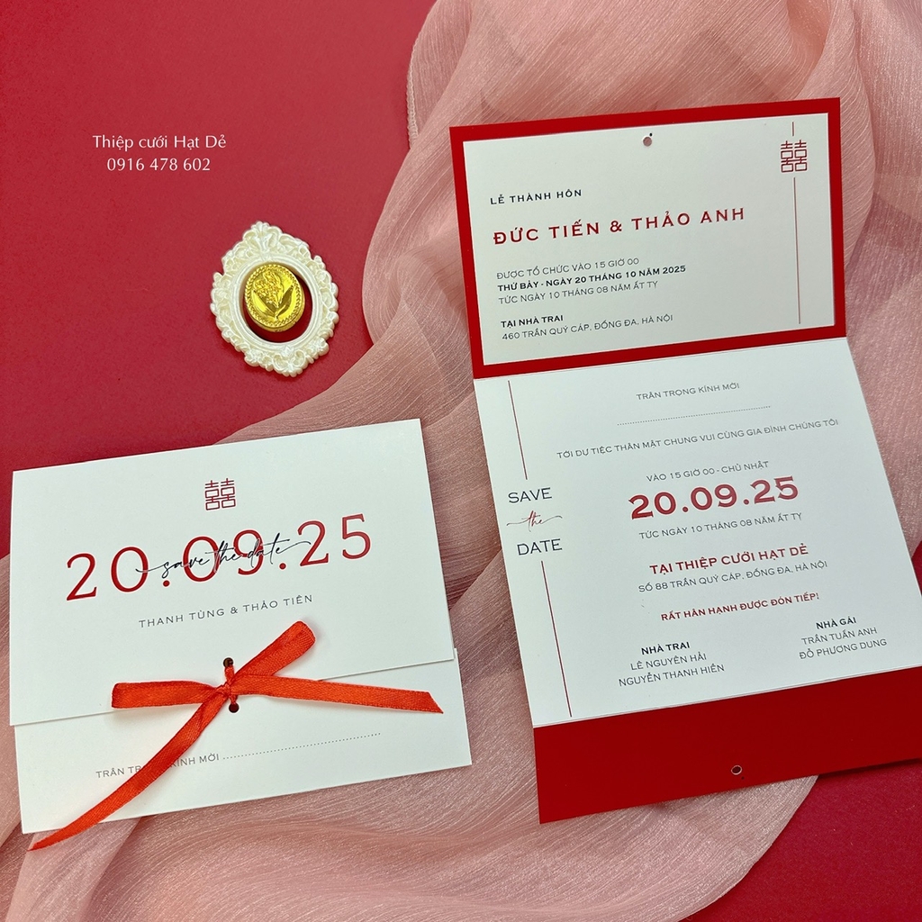- Thiệp gập 3 cạnh cơ bản, kèm dây buộc cắt sẵn