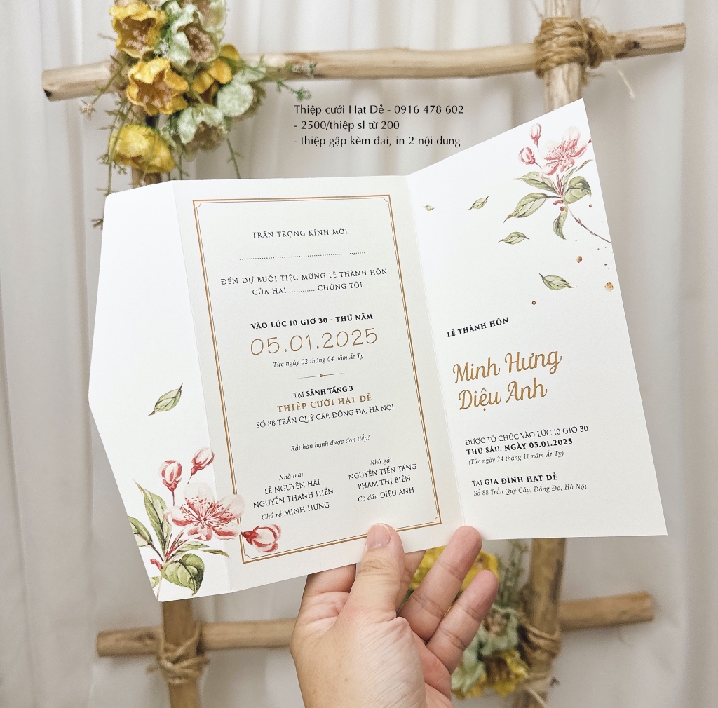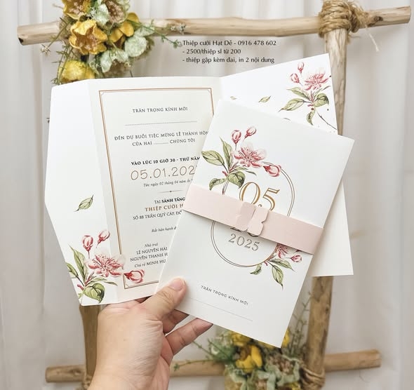 - Thiệp gập 3 cạnh cơ bản, kèm đai giấy