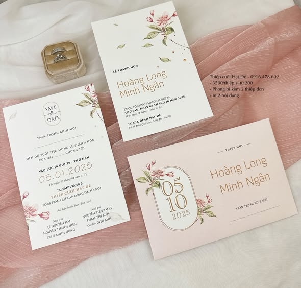 Thiệp gồm 1 phong bì + 2 tờ thông tin rời