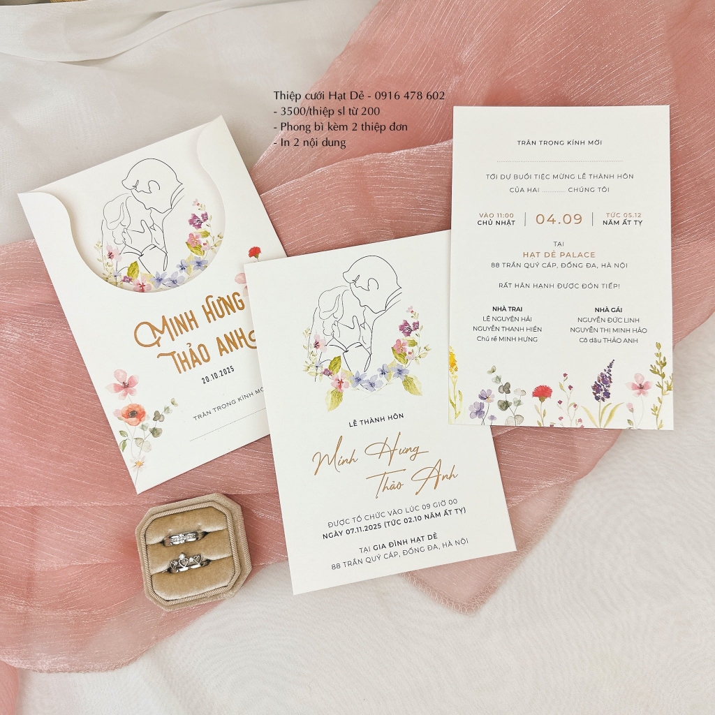 Thiệp gồm 1 phong bì + 2 tờ thông tin rời