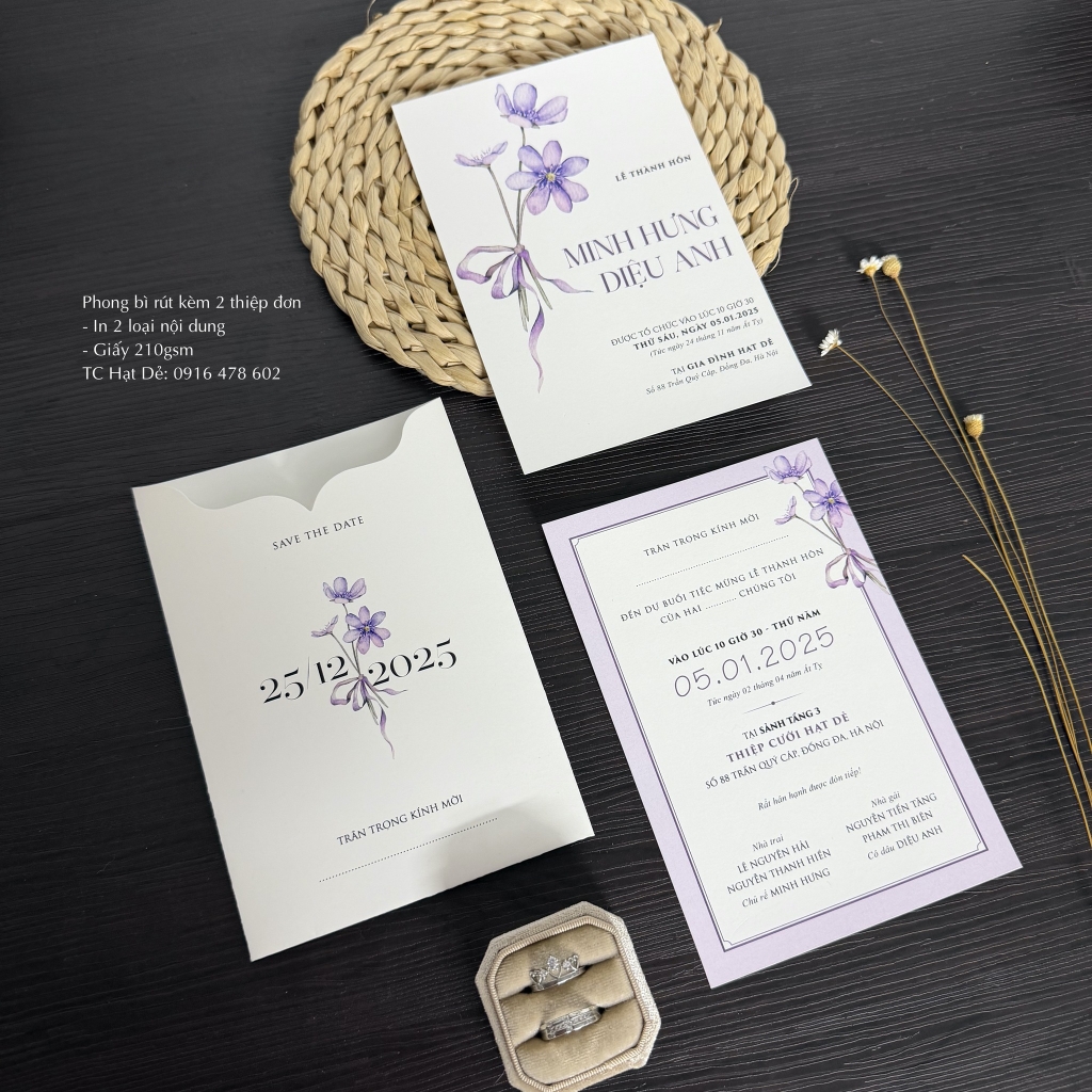 Thiệp gồm 1 phong bì + 2 tờ thông tin rời