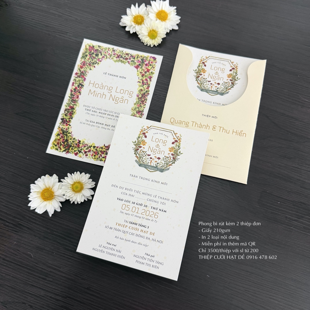 Thiệp gồm 1 phong bì + 2 tờ thông tin rời