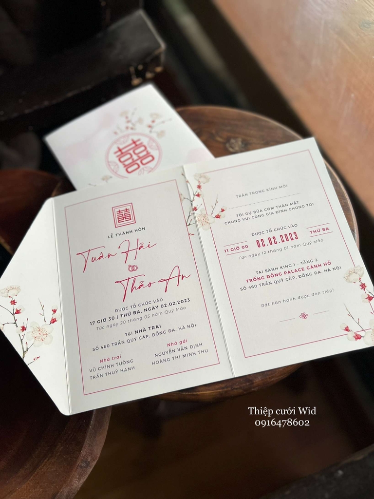- Với vẻ đẹp dịu dàng và quý phái, hoa đào trên thiệp cưới thường mang đến cảm giác lãng mạn và thanh nhã, tạo điểm nhấn tuyệt vời cho ngày trọng đại của đôi uyên ương.