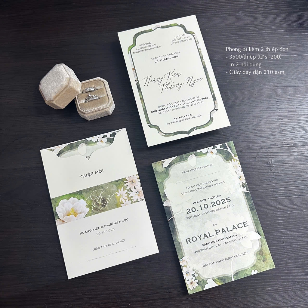 Thiệp gồm 1 phong bì + 2 tờ thông tin rời