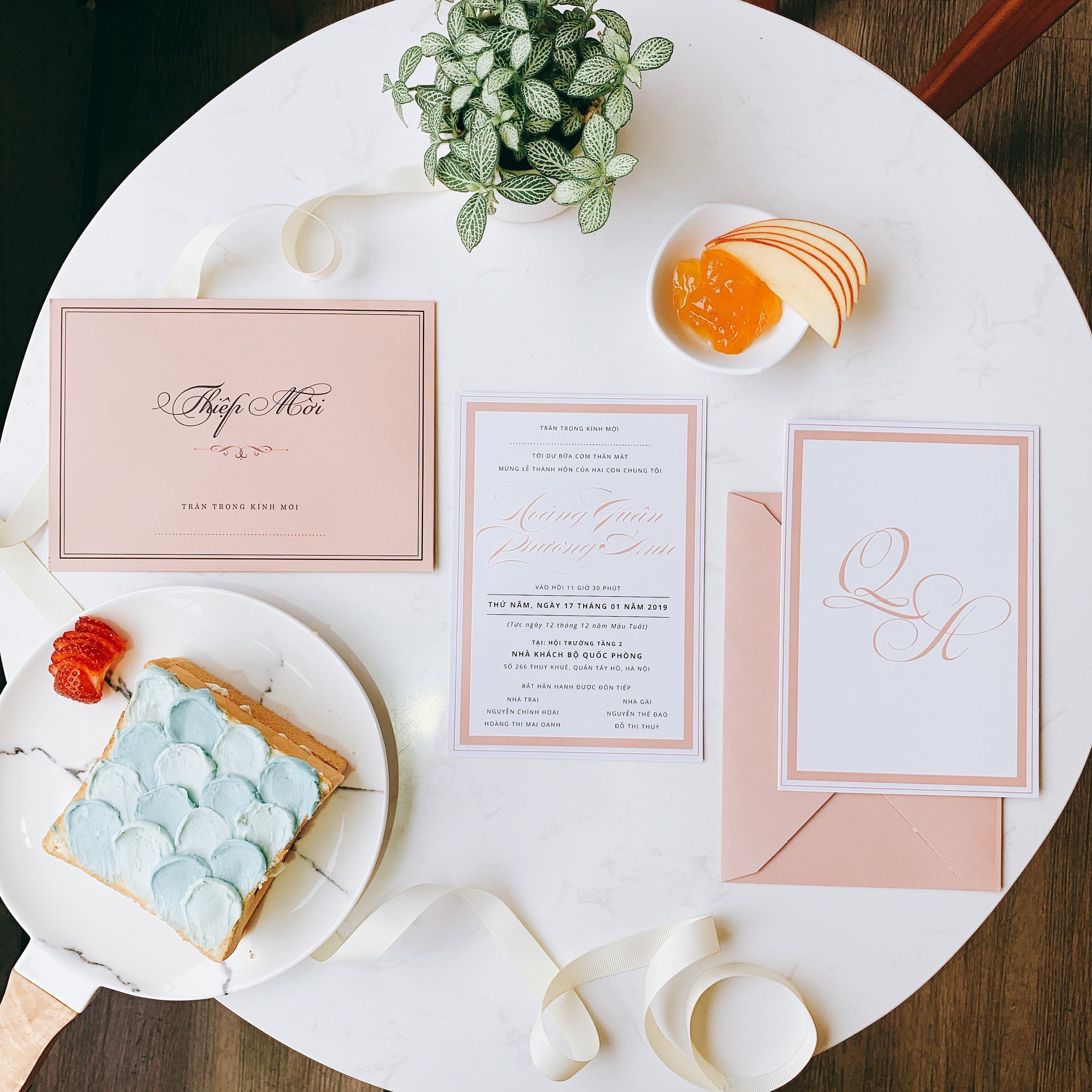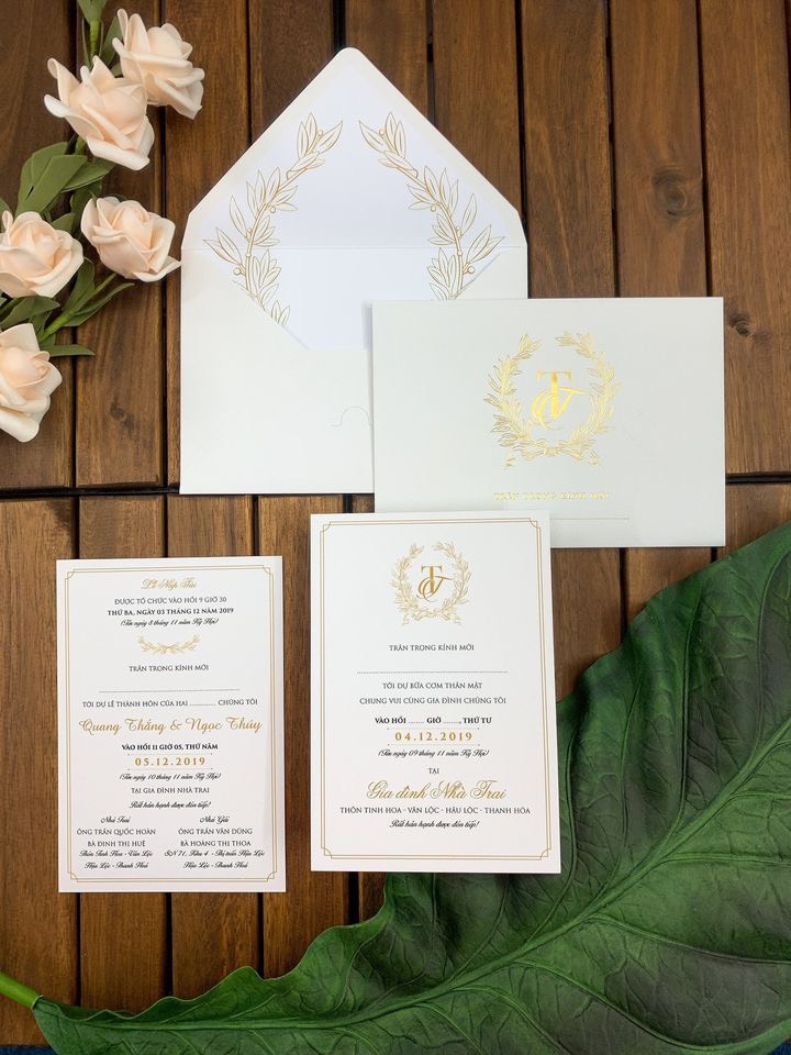 Màu sắc nền trung tính (trắng sữa, be, xanh bơ nhạt) kết hợp với layout tinh gọn và chi tiết ánh kim nhẹ là lựa chọn được yêu thích bởi các cặp đôi yêu sự tinh tế.