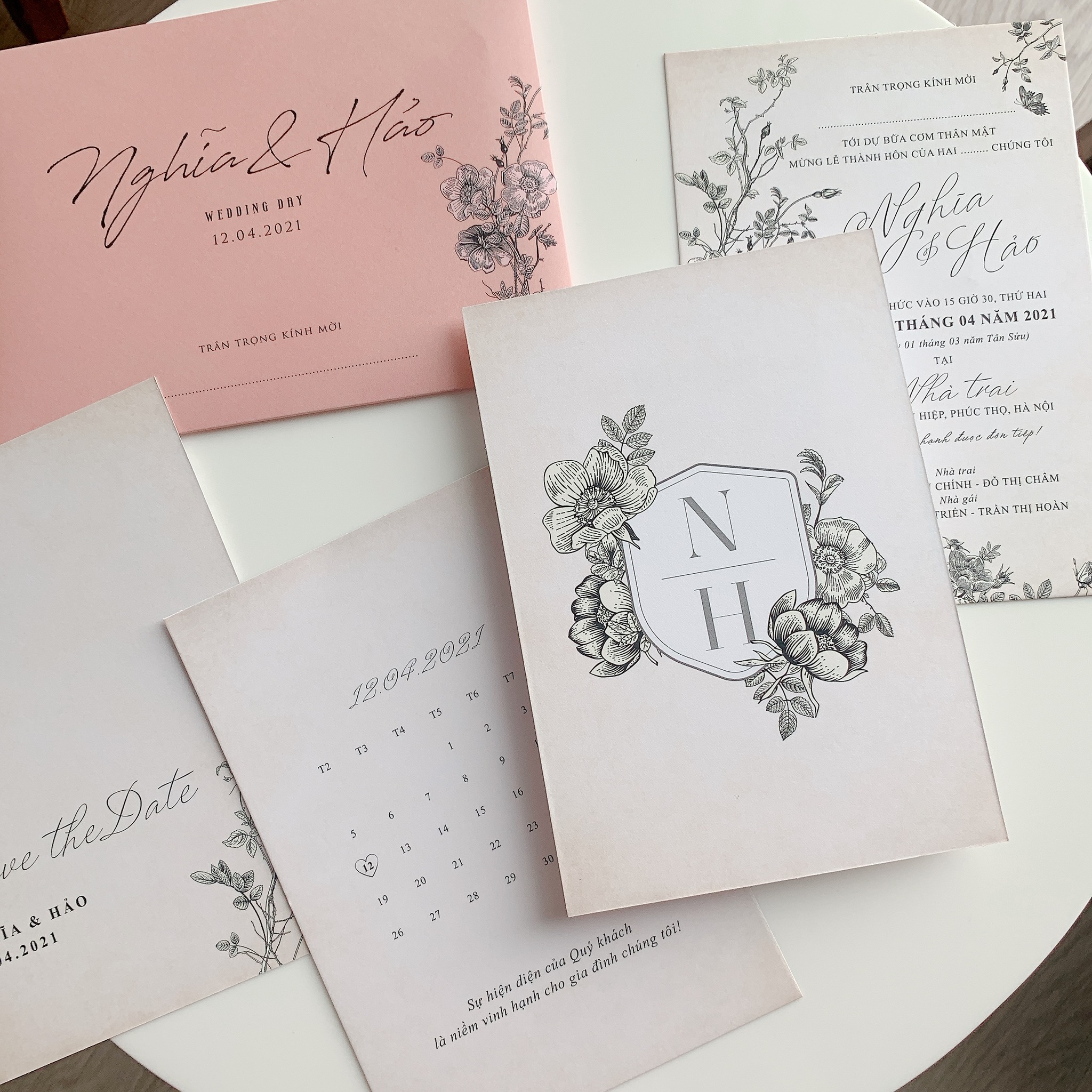 Tại Thiệp cưới WID, các mẫu thiệp vintage được in trên giấy mỹ thuật sần nhẹ hoặc giấy kraft tone cổ điển, kết hợp ép kim hoặc dập chìm tạo chiều sâu và cảm xúc.