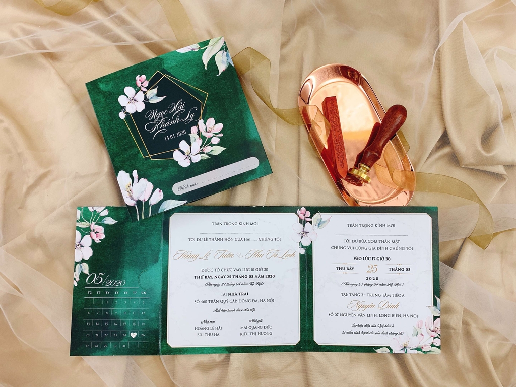 - Với sắc xanh mát mắt, những thiệp này thể hiện sự tươi mới, thanh thoát và sự hài hòa của tình yêu. Mỗi chiếc thiệp là một lời chúc ngọt ngào, là một dấu ấn đẹp đẽ cho ngày trọng đại của đôi uyên ương.