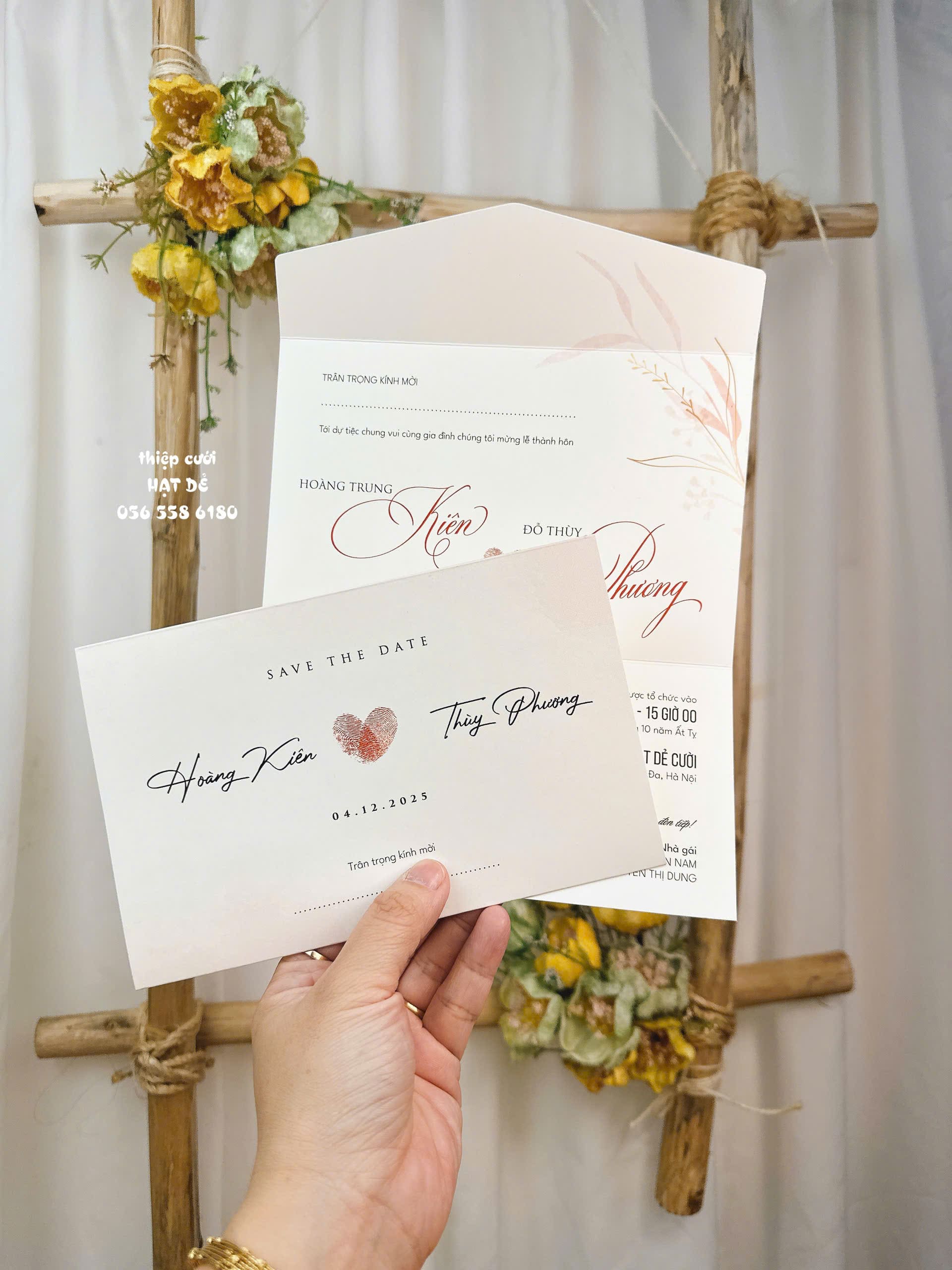 3. Thiệp cưới màu be – Tự nhiên và nền nã