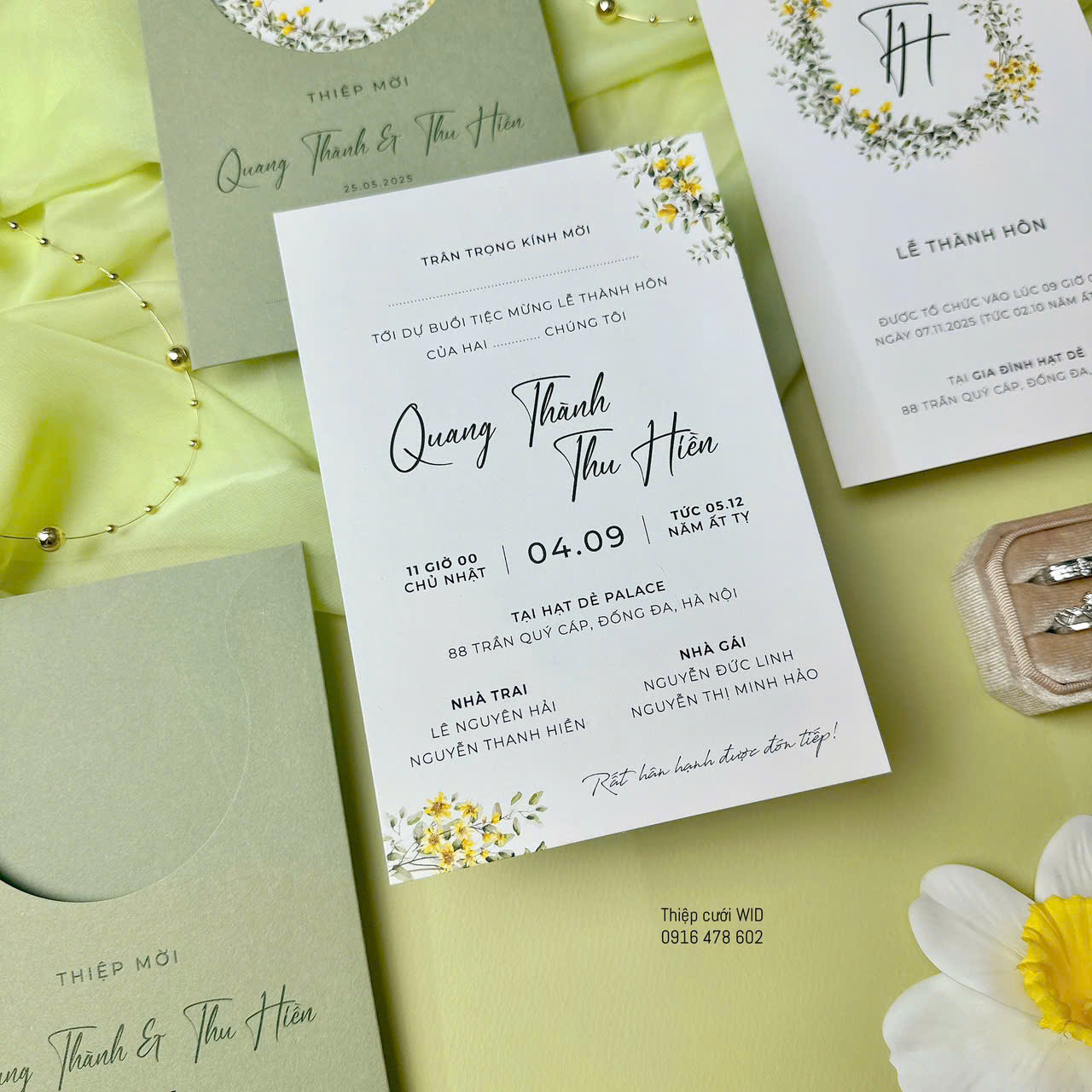 Màu sắc không chỉ là yếu tố thẩm mỹ mà còn là thông điệp tình cảm mà bạn gửi đến khách mời. Hãy để Thiệp cưới WID giúp bạn lựa chọn màu thiệp vừa đẹp mắt, vừa mang đúng cảm xúc cho ngày đặc biệt của hai bạn.