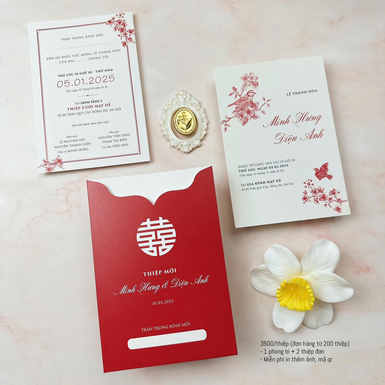 1. Thiệp cưới màu đỏ – Biểu tượng của hạnh phúc truyền thống